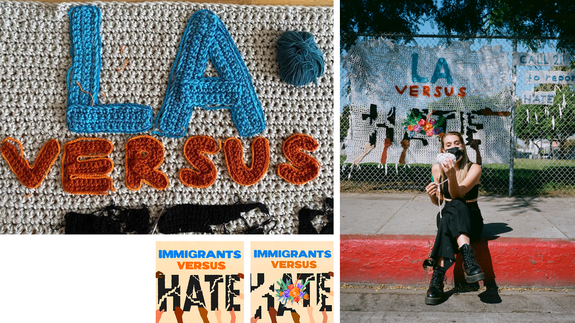 Public art made by fabric artist London Kaye. The art piece was based on “Immigrants vs Hate” that I created.